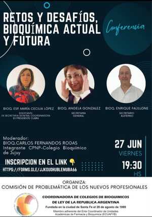 📅 Viernes 17 y Sábado 18 de Mayo Presencial con opcion a Virtual Aranceles: Bioquímicos $15.000.- Técnicos en Laboratorio $10.000.- Fecha límite inscripción y pago: