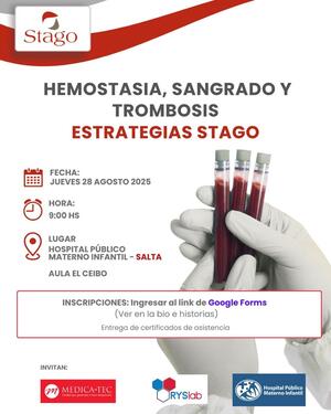 Fecha de inicio 3 de agosto DIRIGIDO A: Médicos, Bioquímicos, Biólogos, Licenciados y Técnicos en Hemoterapia, profesionales de la salud, alumnos interesados en temas Hemostasia